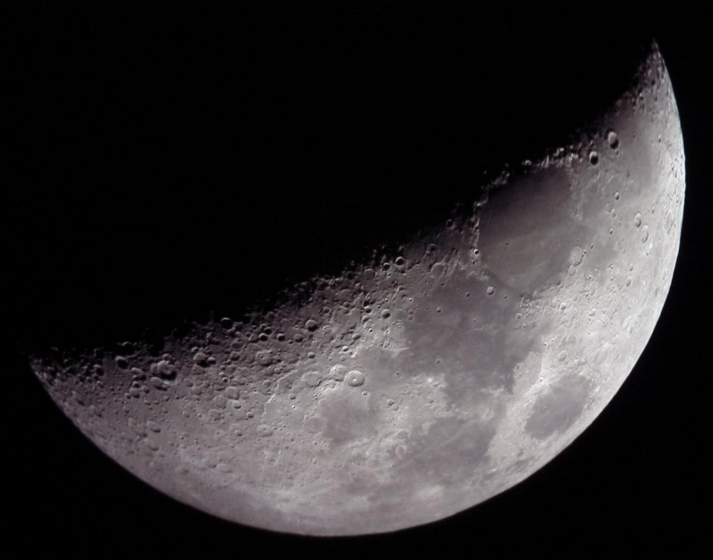 Just before 1st Quarter phase. This is four frames from a digital camera stacked in GIMP. (Not a mosaic.)